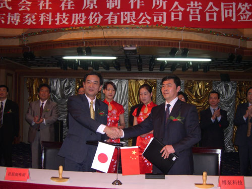 該公司幾十年來,一直致力于國產泵產品技術、質量水平的提升。近幾年來,有感于60萬千瓦以上發(fā)電機組用泵依賴進口的局面,有感于部分國家重點工程用泵仍依賴于國際大公司的現實,他們一直在努力尋找一個國際合作伙伴,引進國外的先進技術和資金,以迅速提升國內泵產品的技術水平。經過多方談判和選擇,他們感到荏原公司為致力于中日友好事業(yè)而迫切與該公司合作的誠意,經過半年多的友好協(xié)商,決定成立合營公司,建立荏原博泵有限責任公司。新公司注冊資本1100萬美元,一期投資2000萬美元,2006年上半年完成。一期投資將主要致力于電廠、引水工程、 冶金礦山用泵的發(fā)展,生產具有世界先進水平的高壓鍋爐給水泵、大型循環(huán)泵、引水工程用超大型泵和鋼廠、礦山用特種泵,5年內國內銷售收入達到10億元、利稅達到1.5億元。新公司將充分利用山東博泵科技股份有限公司強大的國內銷售網絡和荏原公司的全球銷售網,做大做強國內外兩個市場,以最優(yōu)的產品、合理的價格回報給廣大國內外客戶。到2010年以后成為國內最大最強、國際知名的泵類產品生產基地。