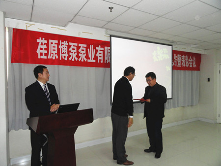 公司常務副總經理王正軍在講話中肯定了營業(yè)工作的亮點,指出:一個優(yōu)秀的業(yè)務人員是充分利用公司的各種資源來開展銷售活動并取得良好的業(yè)績。營業(yè)部在2013年的工作中,取得了公司發(fā)展史上的最好成績,但是在某些方面還不盡人意,應該引起我們的反思。期待大家2014年在項目的過程控制、貨款的回收、訂貨的價格以及交貨期的執(zhí)行等方面做得更好,使公司的經營事業(yè)步入健康發(fā)展的軌道。