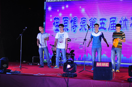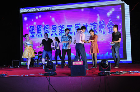 18:00,文藝演出正式開始,首先是搖滾樂隊帶來的勁爆歌曲,將晚會現(xiàn)場帶入了熱烈的氛圍。晚會上,有抒情懷舊的經(jīng)典老歌,有驚艷柔美的女工舞蹈,有激情四射的魅力街舞,還有新員工自編自演的三句半,更有抒發(fā)對公司深厚情感的詩朗誦《騰飛吧,荏原博泵》。有公司領導的獻唱,有普通員工的表演。每一個節(jié)目,都凝聚了員工的心聲,每一個節(jié)目都飽含了員工的熱情。在晚會上,公司常務副總經(jīng)理王正軍先生深情地說;今天是個歡樂的日子,荏原博泵歷經(jīng)八年的發(fā)展,從現(xiàn)在開始已經(jīng)步入了健康發(fā)展的軌道。今年公司訂單已達五個億,下一步就是生產(chǎn)、制造、交貨要交給在座各位,希望大家就像一臺機器的每個部件一樣,齊心協(xié)力配合好,公司的經(jīng)營成果會與大家共享!王總也一改往日的豪情,演繹了一首《風往北吹》,表現(xiàn)了一個鐵血男兒柔情的一面。
