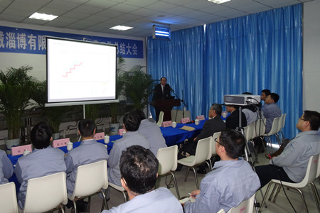王正軍總經(jīng)理首先對2014年度工作做了總結(jié):2014年是一個豐收年,各項指標(biāo)創(chuàng)公司歷史新高。訂貨同比增長2%, 營業(yè)收入同比增長9.2%,應(yīng)收賬款大幅下降。更可喜的是臨界利潤率增長3.8個百分點(diǎn)。公司連續(xù)二年實現(xiàn)盈利,完成了荏原制作所的總體目標(biāo) 。